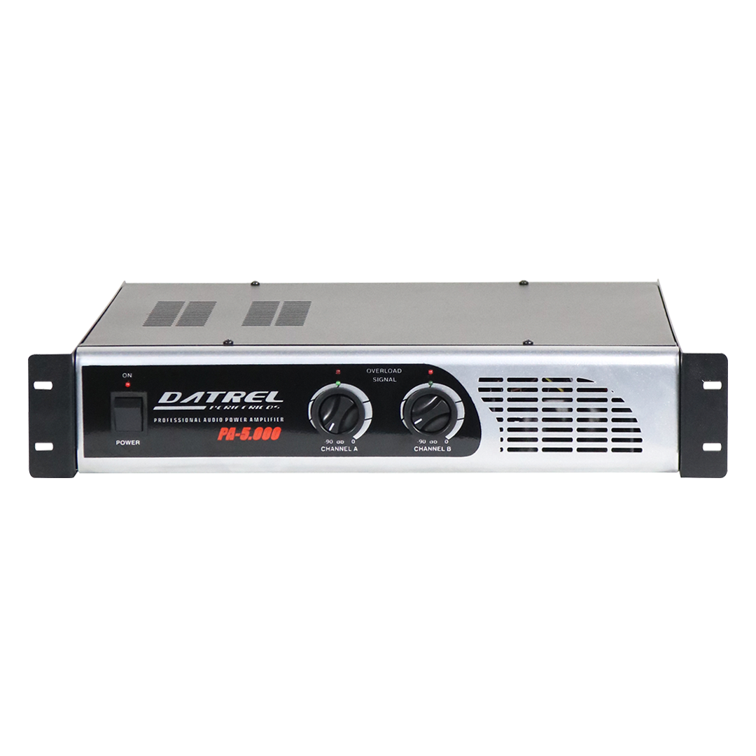 O Amplificador de Potência PA-5.000 DATREL conta com 600W de potência, sendo amplamente usado em sistemas de som profissionais com aplicações nas mais diversas áreas, com resposta de frequência FULL RANGE excelente opção para eventos como festas em geral, igrejas, palestras, convenções, casa de shows, auditórios, DJS e projetos de sonorização de pequeno, médio e grande porte onde se exige qualidade e desempenho por longas horas graças ao seu sistema de ventilação forçada.